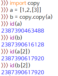 얕은 복사는 값을 할당하면 새로운 id가 부여되지만 mutable객체 안에 mutable 객체가 존재하면 내부 객체는 같은 주소를 바라보게됨