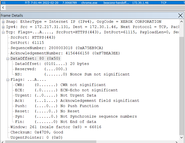 Acknowledgement number: 데이터를 받은 수신자가 예상하는 다음 시퀀스 번호를 의미함
