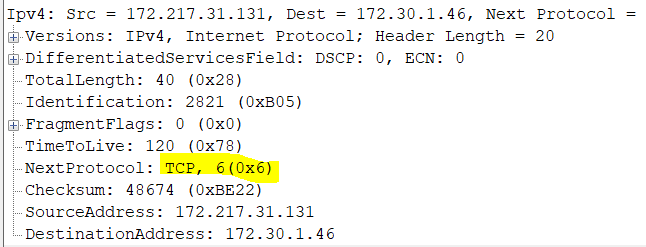전송계층이 TCP라서 Protocol의 값이 6이다.