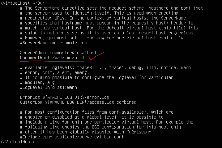 문서 root 경로가 /var/www/html 로 되어있는 것을 확인함