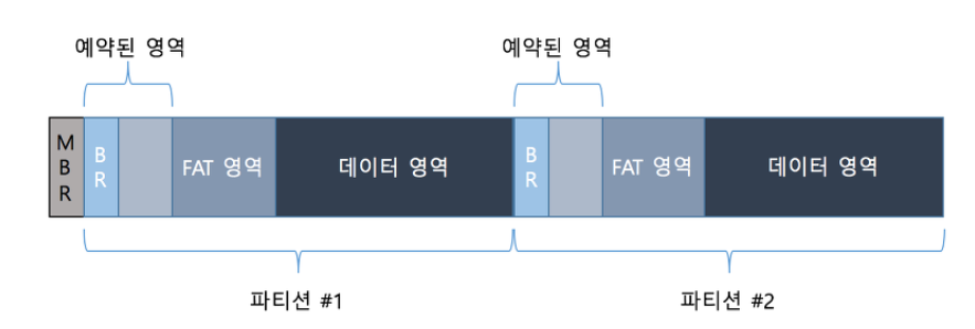 - 예약된 영역: FAT 파일시스템에서 가장 앞 부분에 위치하는 구조로 여러 개의 섹터로 구성됨