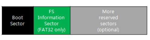 - 예약된 영역은 다시 부트 섹터, FSINFO 섹터, 추가적인 섹터로 구분됨