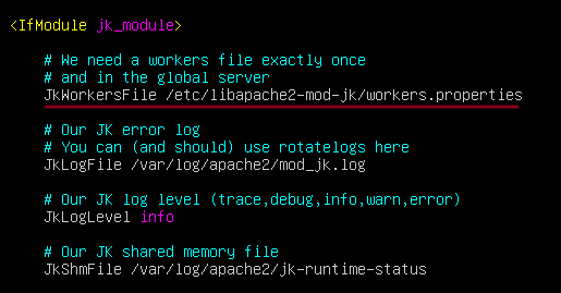 2. sudo vi /etc/apache2/mod-available/jk.conf 수정하기