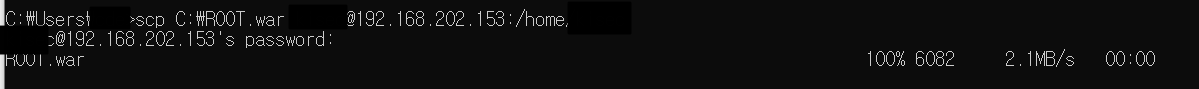 scp (window경로)파일 (linux계정)@서버주소:목적경로