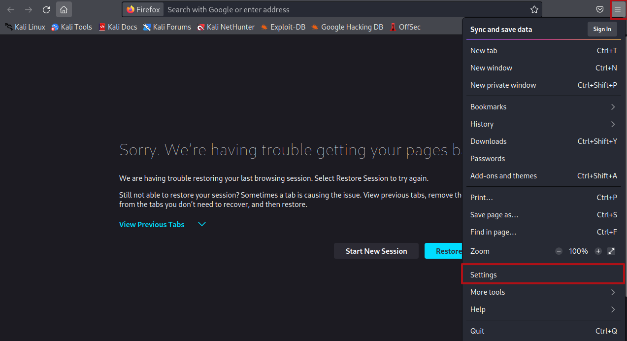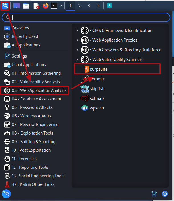 1. 칼리 리눅스의 3 -> burp suite를 클릭한다.