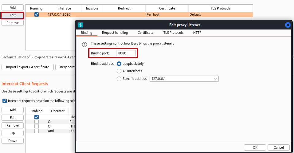 *Bind to address를 통해 프록시가 실행되는 IP주소 변경이 가능함(나의 경우는 Loopback을 그대로 사용함)