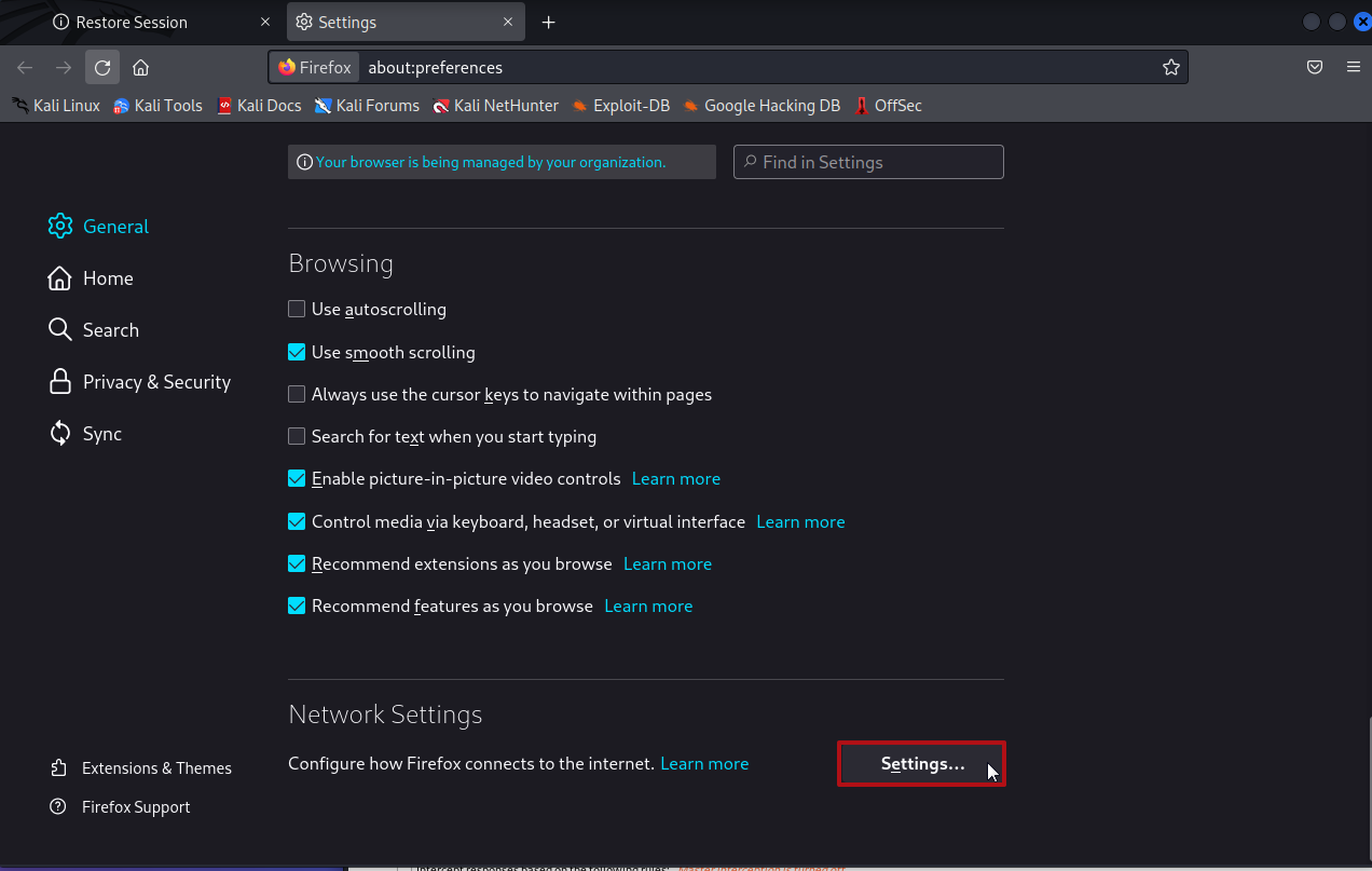 2. Network Settings의 Settings 클릭