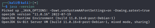 - 버프스위트의 JAR은 JRE에서 실행되기 때문에 자바가 설치되어야 함(설치 여부는 java - version으로 확인 가능)
