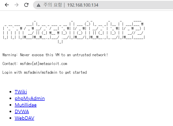 - VM 이미지 형태로 배포하여 설치가 간편하고 DVWA 이외에도 다양한 취약점을 내포하고 있어 취약점 테스트와 학습용으로 적합