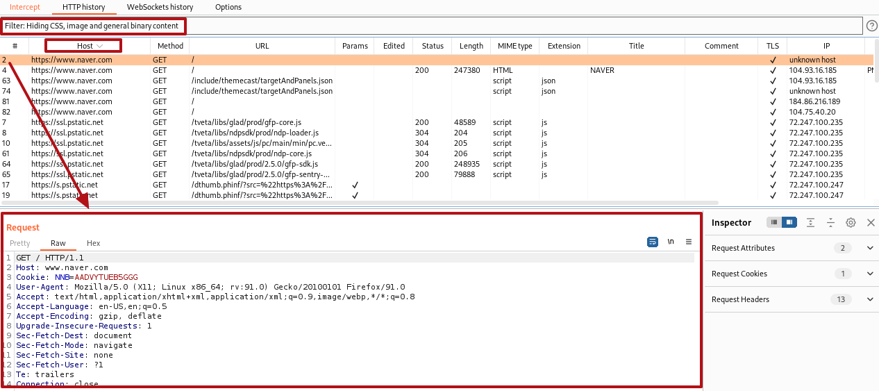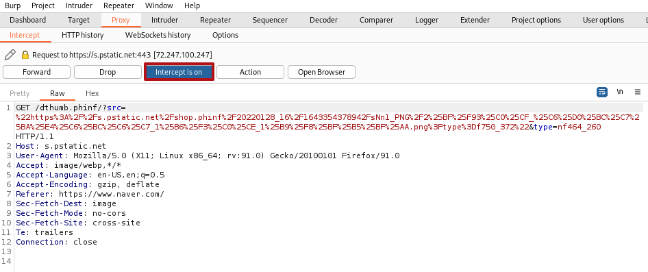 *Intercept is Off여도 가로채는 기능만 비활성화이고 패킷을 중계하는 Proxy의 역할은 활성화되어 정보가 계속 쌓임