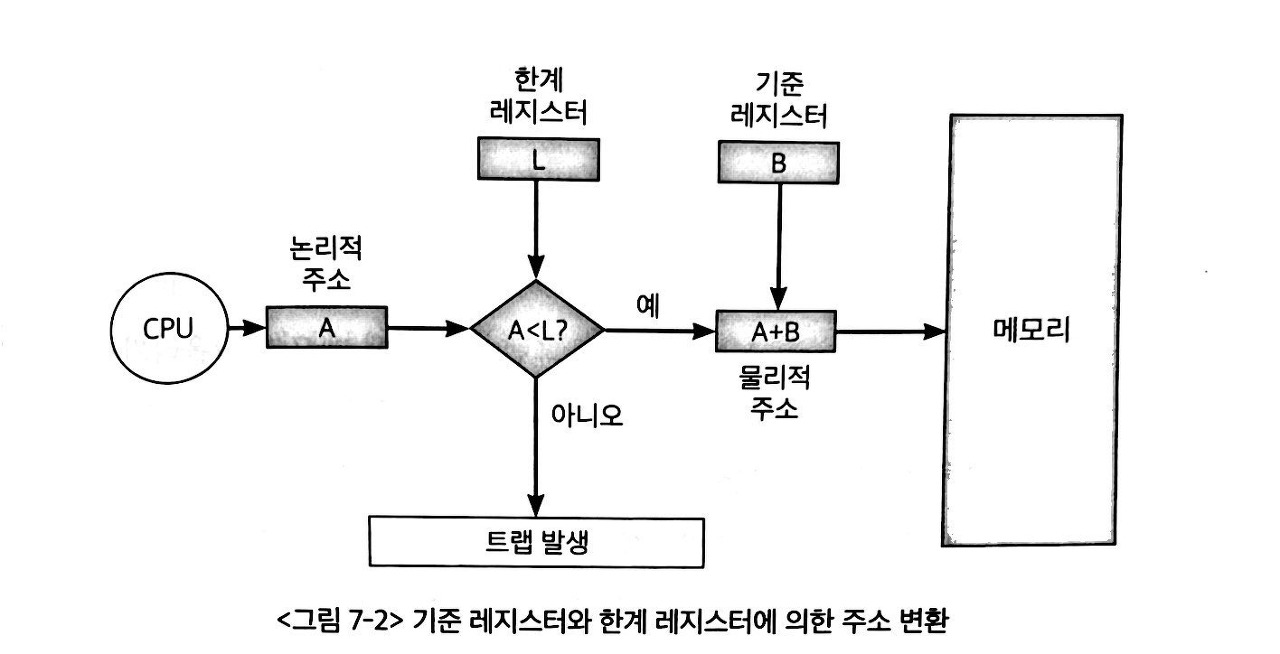 *메모리 보호 기법으로 베이스 레지스터와 한계 레지스터가 쓰임