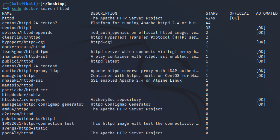 *각 docker 마다 공식 이름이 프로그램명과 동일한 경우가 많지만, apache의 경우 httpd라는 이름을 사용함