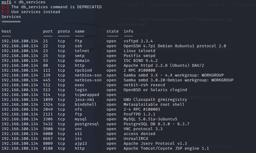 3. db_services 명령어를 통해 데이터베이스에 저장된 스캔 결과 확인