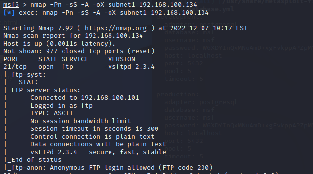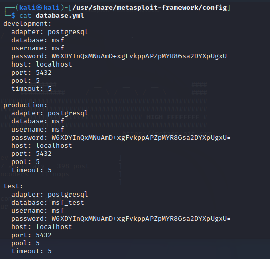 /usr/share/metasploit-framework/config/database.yml -> msf 데이터베이스 구성 확인