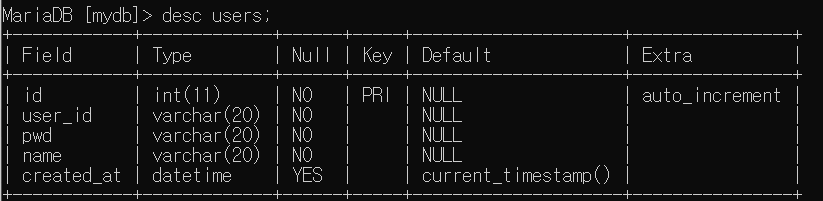 insert into users(user_id, pwd, name) values ('test','1234','홍길동');
