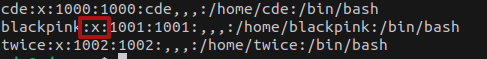 x자리에는 원래 비밀번호가 왔었지만, 해당 내용은 보안상의 이유로 /etc/shadow에서 확인 가능