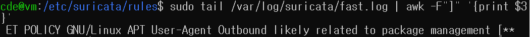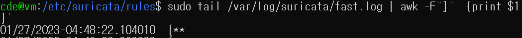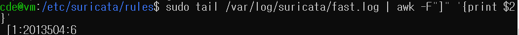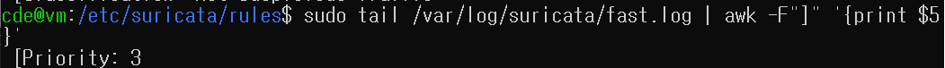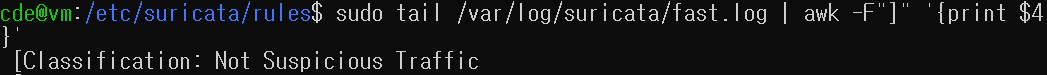 sudo tail -f /var/log/suricata/fast.log //로그를 실시간으로 확인하기