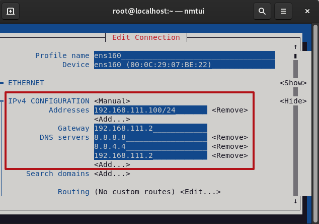 1) ens160.nmconnection 파일에서 해당 부분 설정