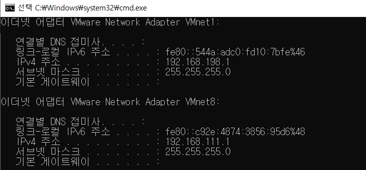 Vmware Network Adapter VMnet8에 IPv4주소가 제대로 바뀐 것을 확인한다.