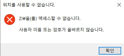 - cmd에서 net use /delete 진행 후 다시 연결해보기