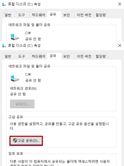 - 내 PC에 공유 폴더 연결 제대로 수립됨