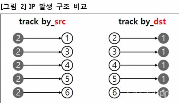 | track by_src: 출발지 패킷 track by_dst: 목적지 패킷 |