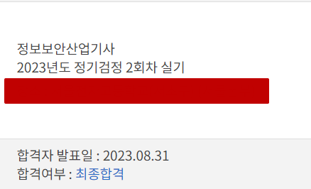 | 23년 2회차 정보보안기사 후기 (0) | 2023.09.10 |