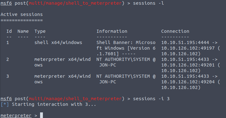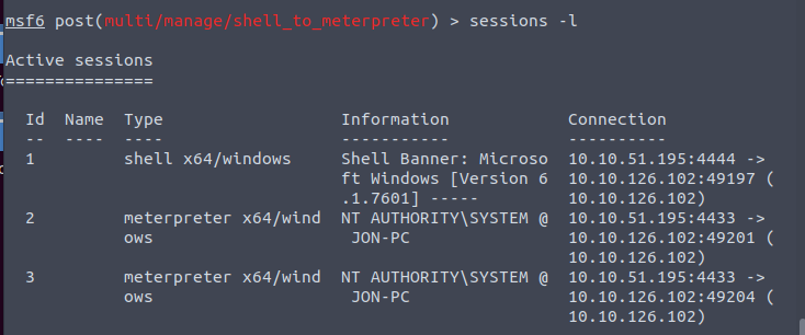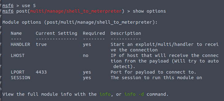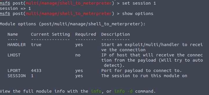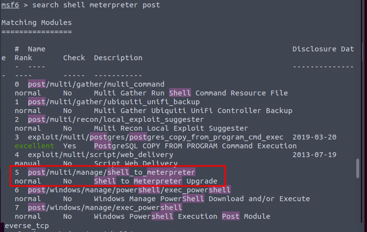 - 일반 shell을 meterpreter shell로 변환해주는 후속 모듈 찾기