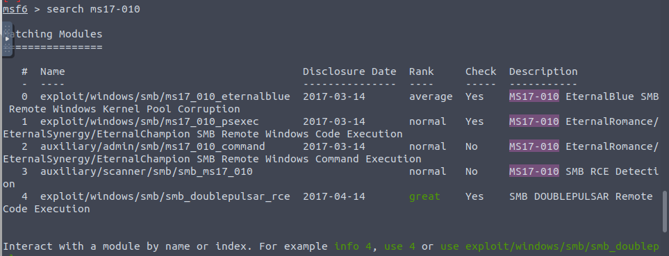 - 위에서 찾은 취약한 ms17-010에 대한 스크립트 찾기