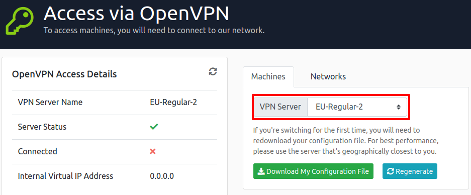 - 여기서 VPN server 바꾸고 설정 파일 다시 다운로드 후 openvpn <파일명>.ovpn 명령어 실행