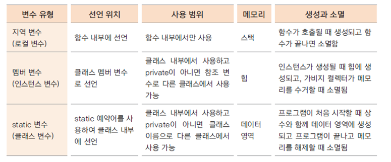 - 클래스 내부의 여러 메서드에서 사용하는 변수는 멤버 변수로 선언하는 것이 좋음