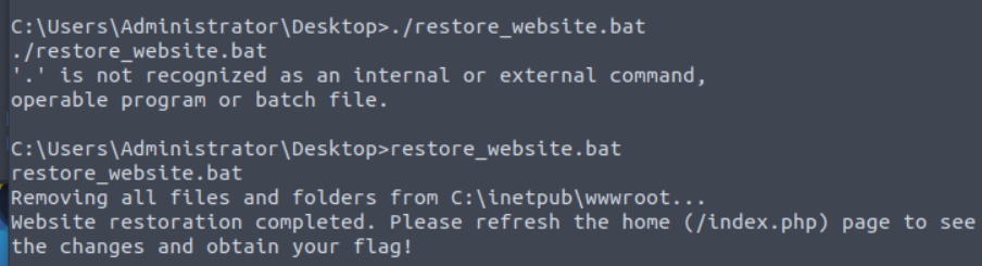 5) 웹사이트 복구 배치 파일 실행
