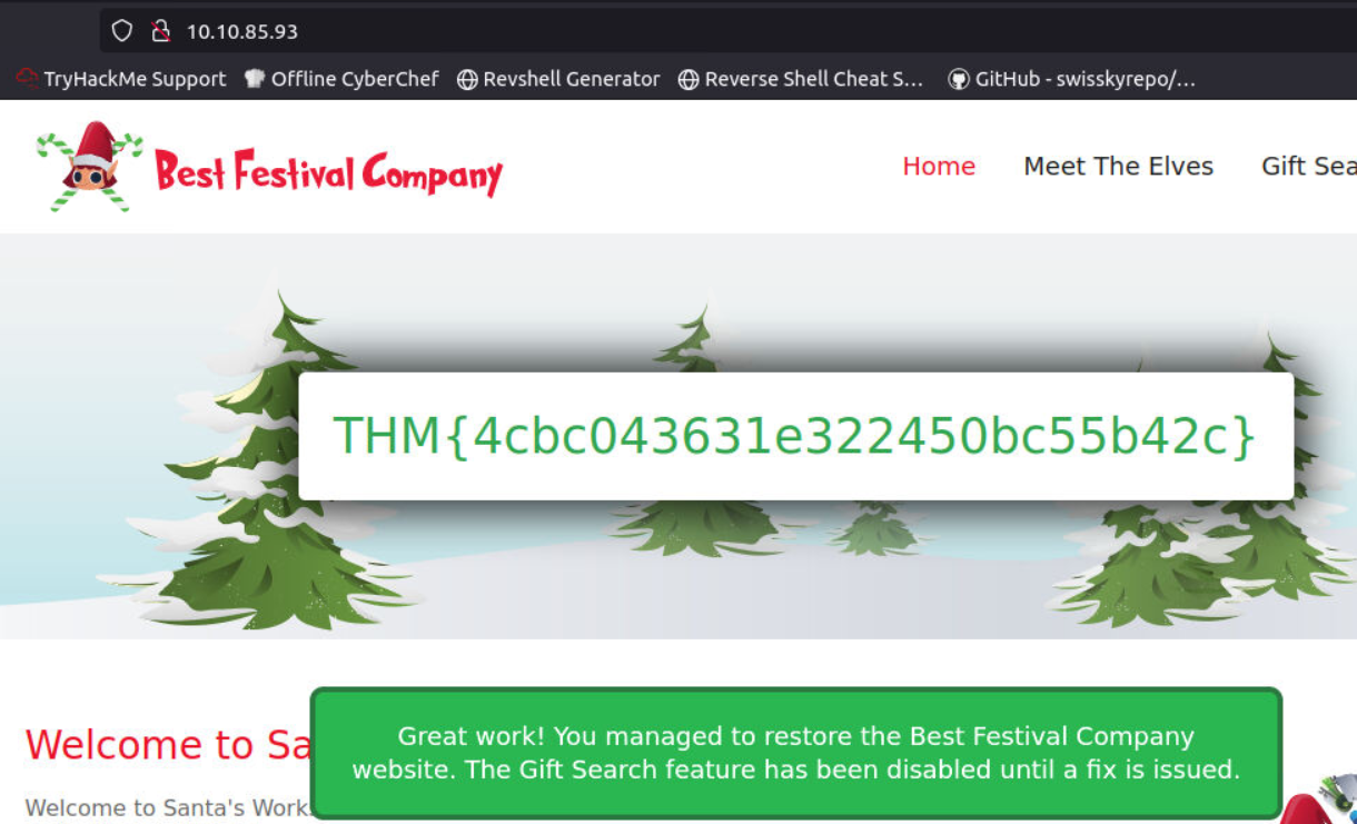choideu 2023. 12. 11. 19:01Story: Best Festival Company는 회사 웹사이트인 bestfestival.thm이 올해 크리스마스 상황에 대한 일부 정보를 노출하고있다는 보고를 받고 보안센터가 이를 조사한 결과 웹사이트가 하이재킹되어 손상된 것을 확인함