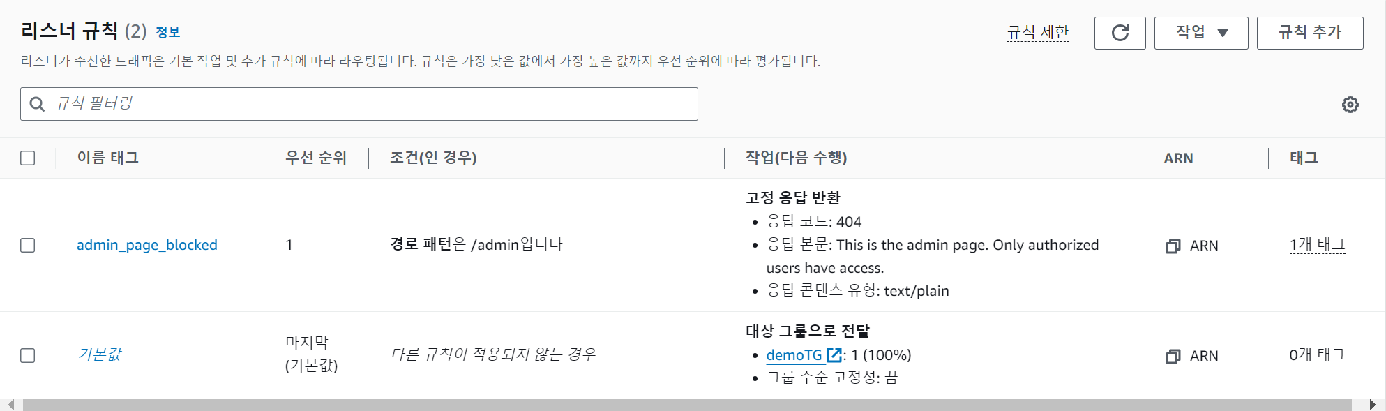 [AWS] ALB - /admin 페이지 사용자 지정 문구 반환 Rule 생성 본문