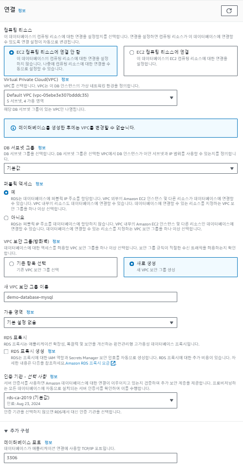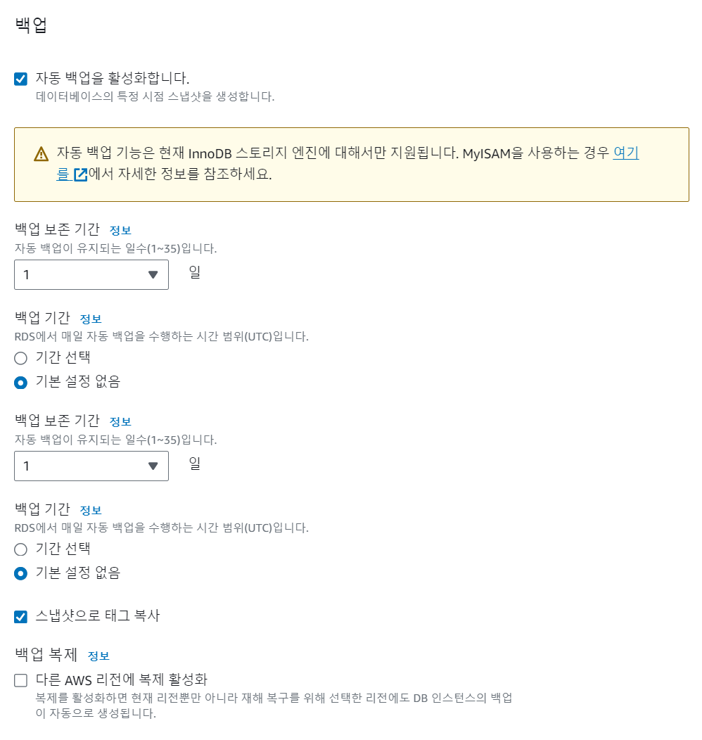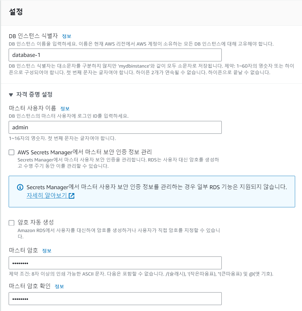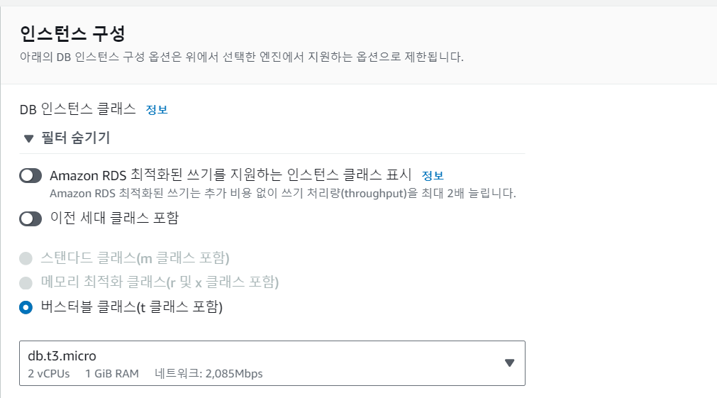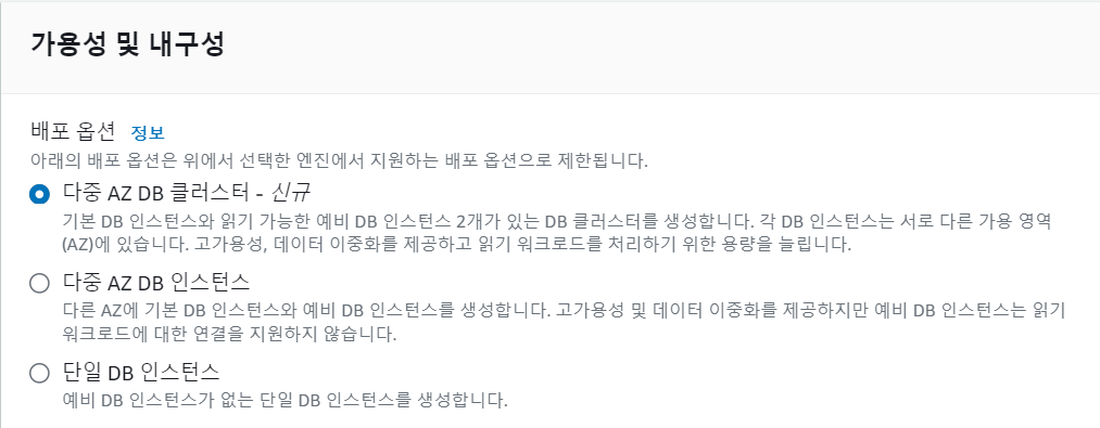 - 프리티어의 경우 단일 DB 인스턴스가 default value임