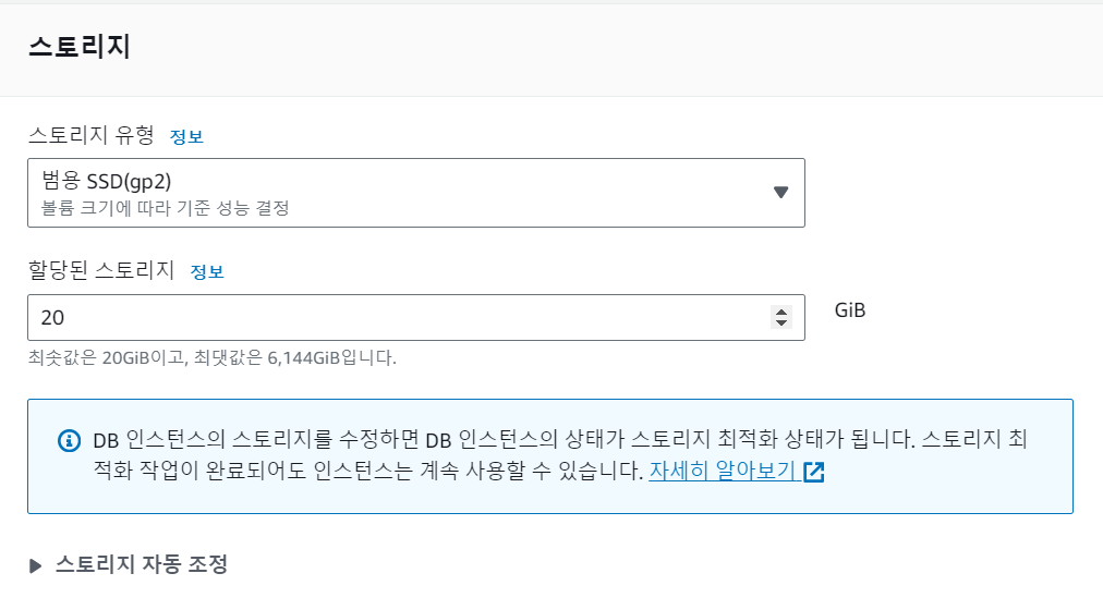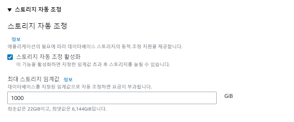 - 스토리지 자동 조정 옵션을 통해 가용성 확보
