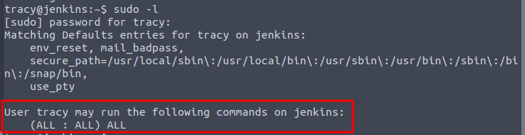 - (ALL : ALL) ALL : sudo를 사용해 tracy가 모든 명령을 수행할 수 잇음을 나타냄