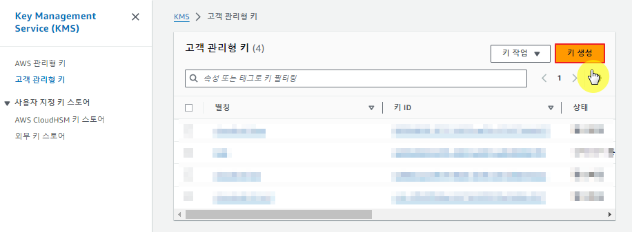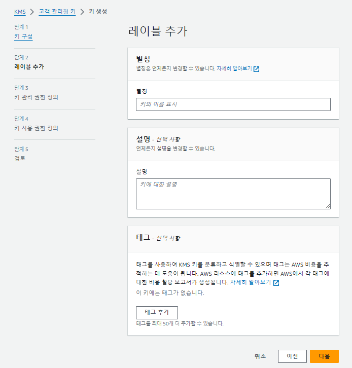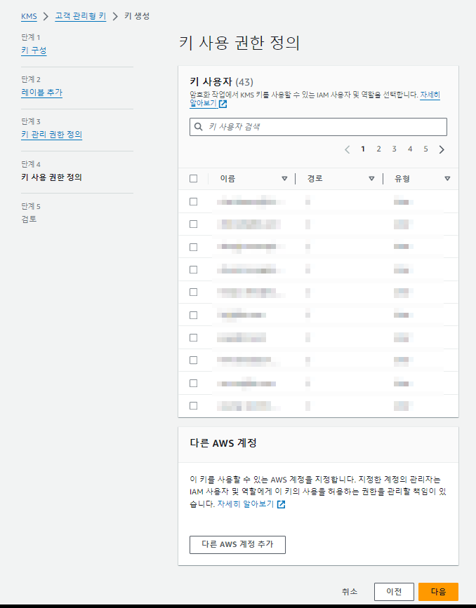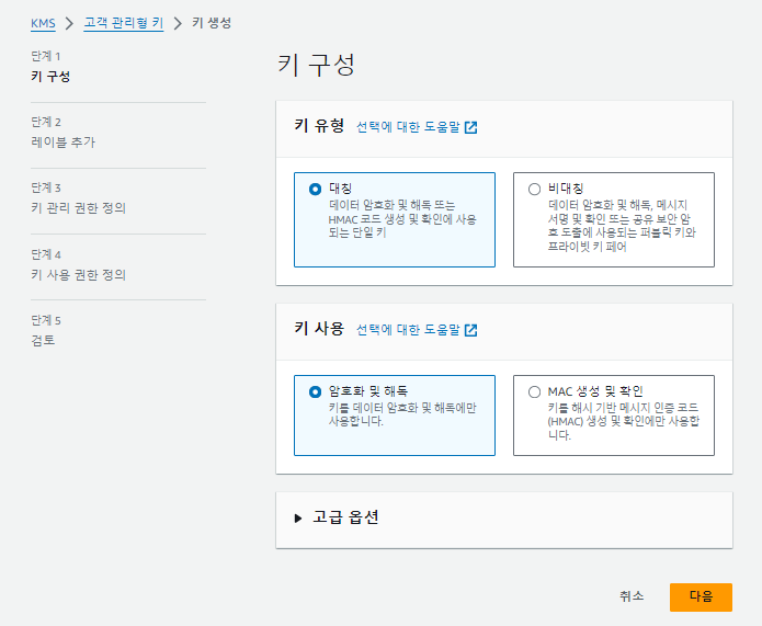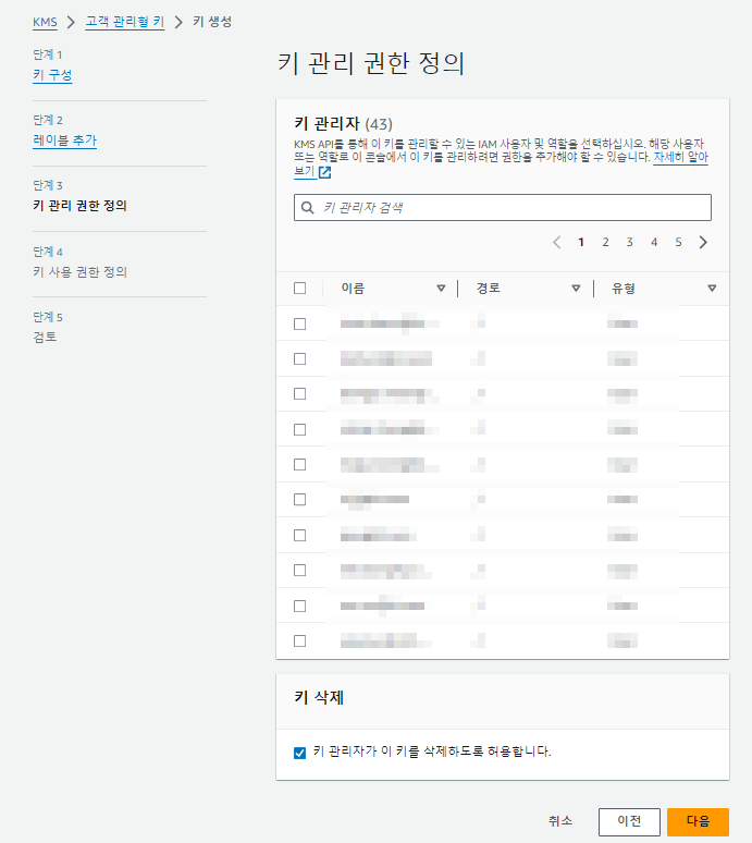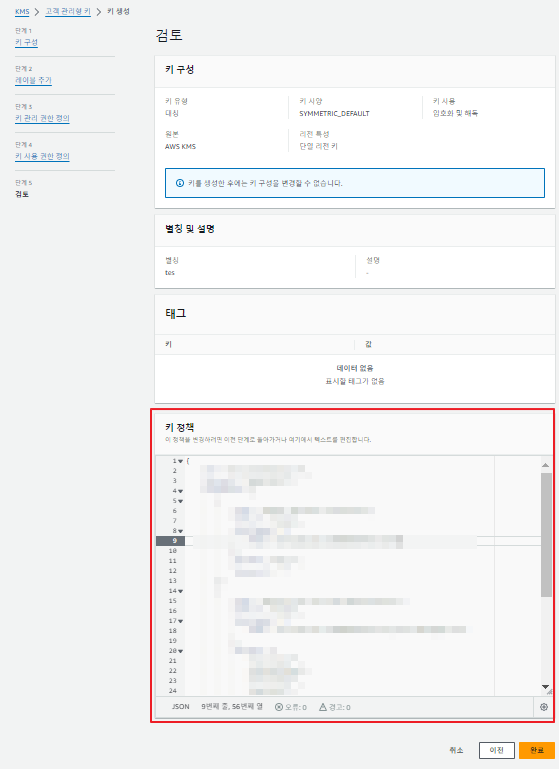 마지막 검토 단계의 키 정책을 아래와 같이 수정 必
